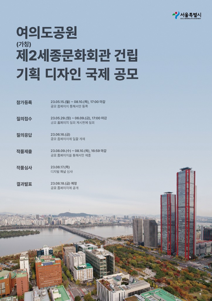 홍선기 서울시 미래공간기획관은 “이번 기획 디자인공모를 통해 도심으로 격상된 여의도 위상에 맞는 한강 수변 랜드마크를 건립하는 최상의 설계안이 선정될 수 있도록 많은 참여를 기대한다”고 말했다.