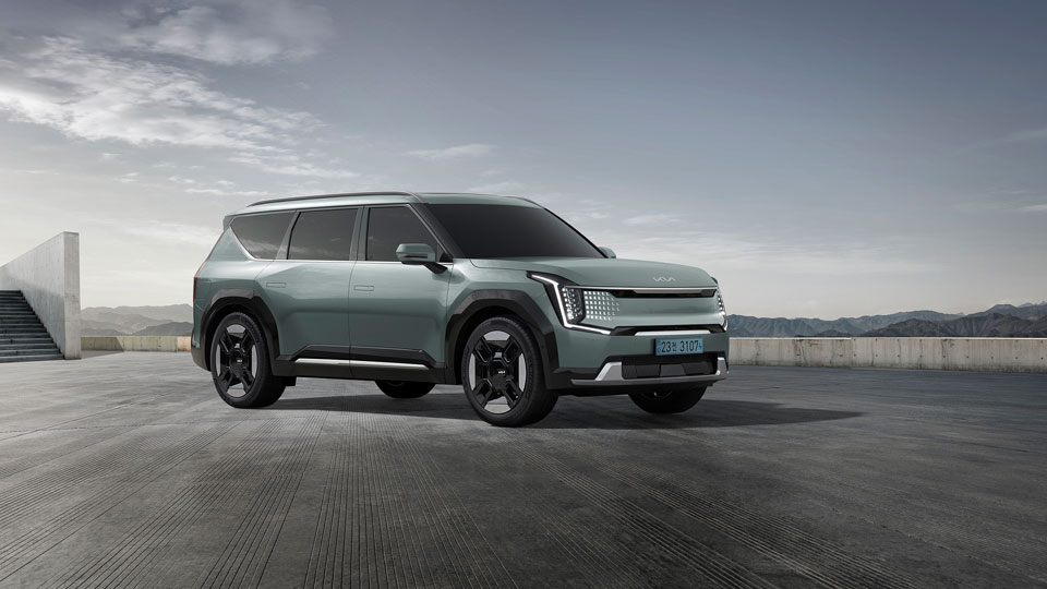 국내 최초 3열 대형 전동화 SUV EV9은 웅장함이 돋보이는 외관과 새로운 차량 경험을 선사할 실내 공간을 갖췄다. 또 99.8kWh 대용량 배터리 기반 501km의 1회 충전 주행거리(※19인치 휠 2WD 모델 산업부 인증 완료 기준)를 달성했으며 최고 수준의 신기술도 대거 적용됐다.