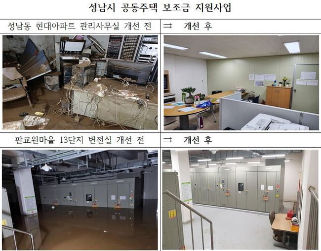지원금 중 10억 원은 지난해 8월 집중호우로 단지 내 기계·전기실 침수 등의 피해를 본 판교동 판교원마을 13단지 등 21곳 아파트단지의 자연 재난 피해복구 지원비다.