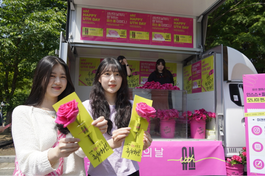 LG유플러스는 대학 캠퍼스에서 ‘유쓰(Uth) 대학교 플라워트럭 이벤트’를 열고 성년의 날을 맞은 학생들에게 장미꽃을 선물했다고 16일 밝혔다.