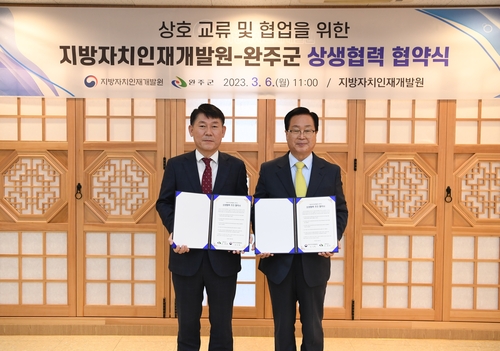 앞서 지방자치 인재개발원은 올 3월에 완주군과 상호협력 업무협약을 맺고 직원과 교육생, 군민의 편익도모는 물론 상호 우호증진을 위한 다양한 교류협력에 나서고 있다. 양 기관은 또 복지증진을 위해 필요한 정보와 편의를 상호 제공하고 불편사항 해소에도 보조를 맞추기로 했다. 인재개발원은 또 명절 때마다 농산물 직거래 장터를 운영해 수익금 1천만 원 이상을 지원한 바 있다.