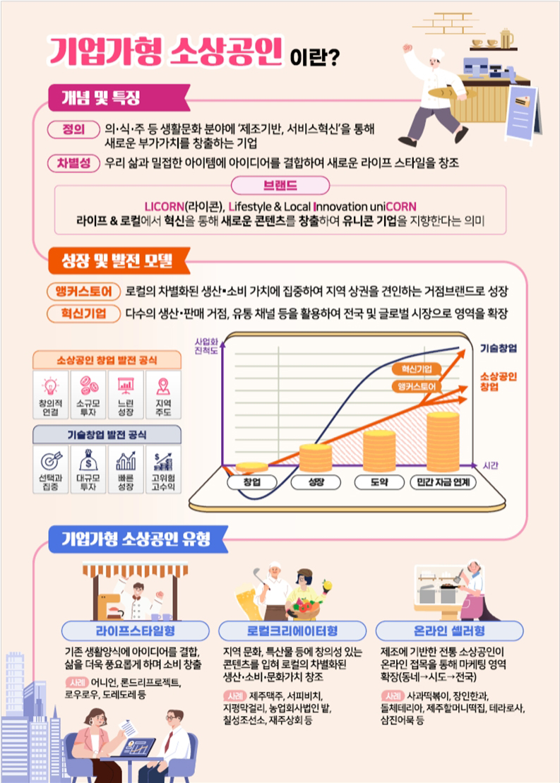 이영 중기부 장관은 “그간 소상공인에 대한 정책은 보호와 지원 위주였고 성장과 육성은 기술 중심의 스타트업에 집중돼 있었다”며 “기술 중심의 창업·벤처 정책과 더불어 우리 삶의 가치를 높이는 생활·로컬분야의 기업가형 소상공인을 새롭게 육성해 지역을 살리고 세계로 뻗어나가는 브랜드가 될 수 있도록 중기부가 함께하겠다”고 밝혔다.