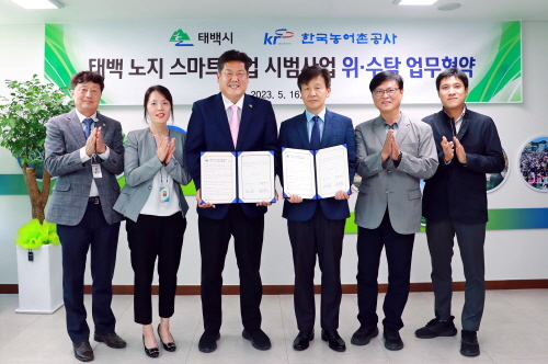 강원 태백시는 노지 스마트농업 시범사업을 성공적으로 추진하기 위해 지난 16일 한국농어촌공사 강릉지사(지사장 김교헌)와 위·수탁 업무협약을 체결했다.