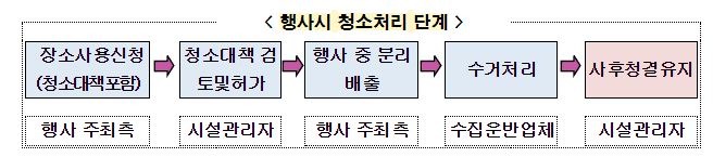 행사장 주변은 시-자치구 주관으로 청소하며, 자치구는 긴급 청소 상황을 대비해 청소기동반을 운영한다.