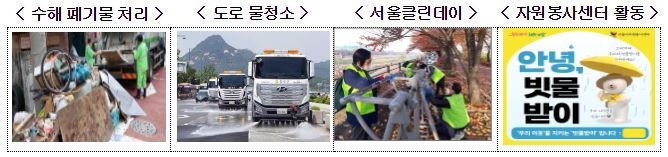 서울시는 청소대책 상황실을 기상 특보별 3단계로 나눠 운영하고, 침수 피해지역 및 수해 폐기물량 확인, 폐기물 수거 인력·장비 신속 동원, 수도권매립지 반입 협의, 수해 폐기물 조기 처리 등을 총괄한다.