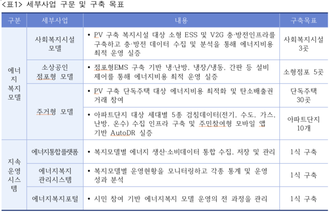 앞으로 성남시는 사회복지시설 3개소와 소상공인 점포 5곳, 단독주택 30곳과 아파트단지 10개소 등을 대상으로 한 지속 가능한 에너지복지 모델을 실증할 예정이다. 또한 복지 모델별 운영현황을 모니터링하고 운영 성과 분석을 위한 관리시스템과 소상공인 및 시민 등이 참여하는 포털 시스템을 구축, 성남시의 에너지 생산과 소비 데이터를 통합적으로 관리할 계획이다.