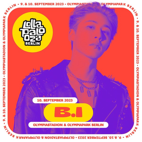 아티스트 비아이(B.I)가 한국 아티스트 대표로 '2023 롤라팔루자 베를린 페스티벌'에 참여한다.