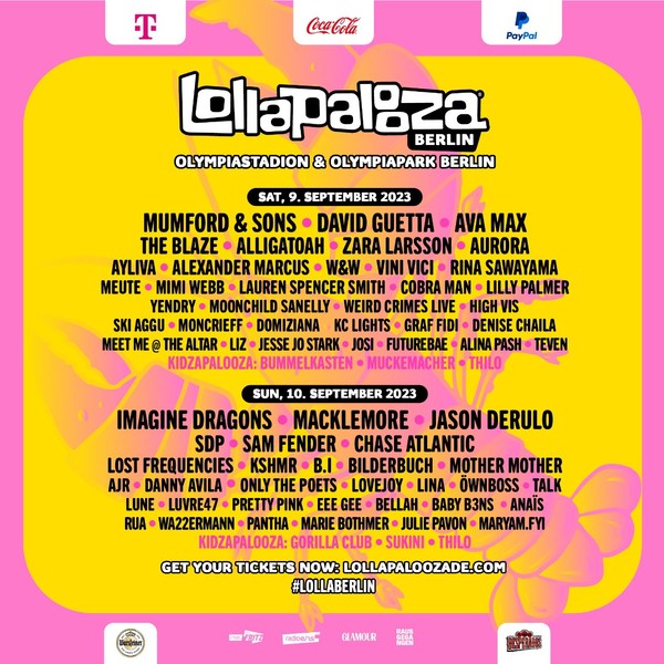 '2023 롤라팔루자 베를린 페스티벌'은 세계적인 록 페스티벌로, 올해 베를린 공연에는 비아이와 함께 이매진 드래곤스, 데이빗게타, 제이슨 드룰로, 아바 맥스 등이 출연한다.