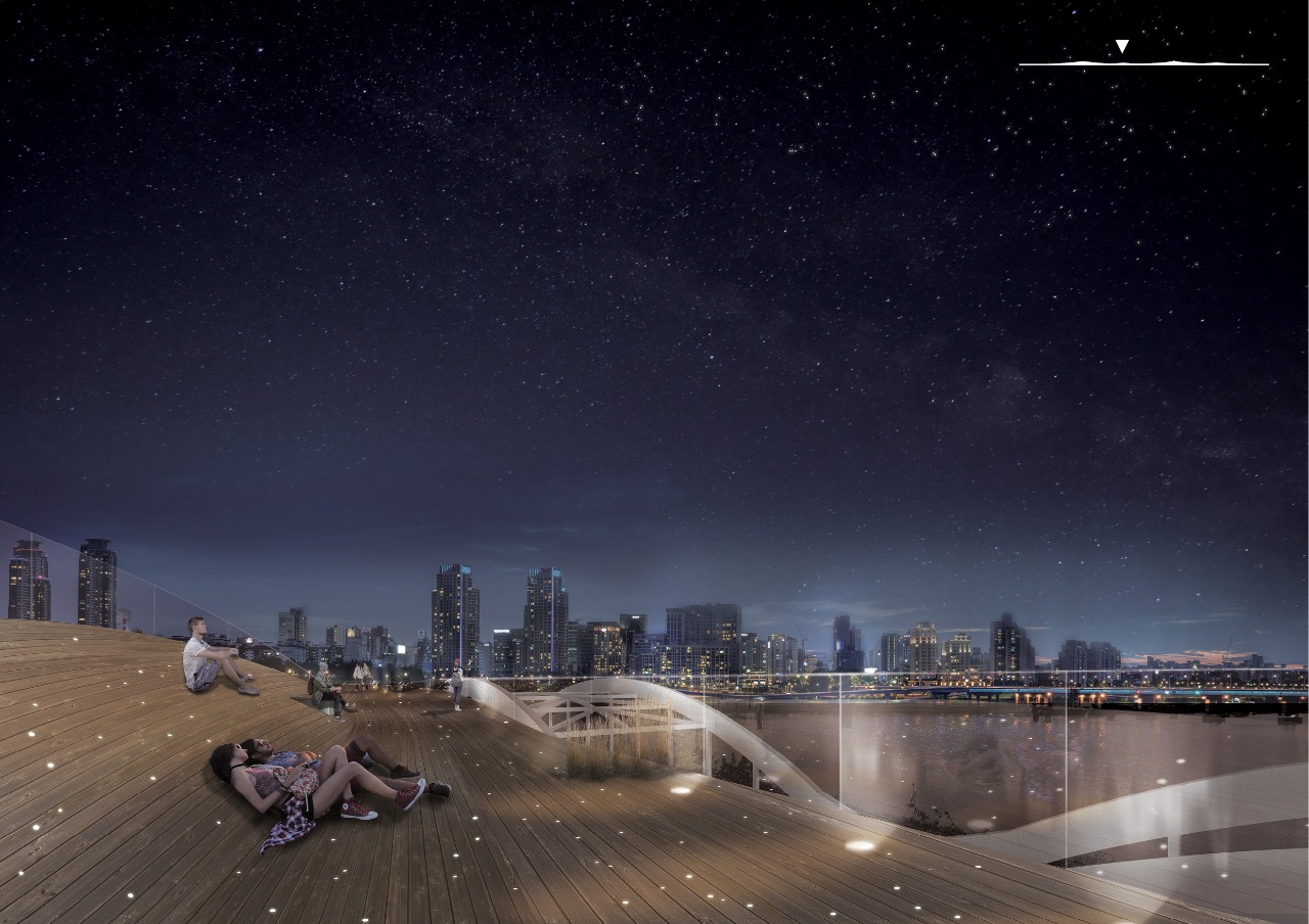통행 아닌 머무는 공간 되도록 전망테라스, 선베드, 공연장 등 만들고 바닥엔 은하수 조명