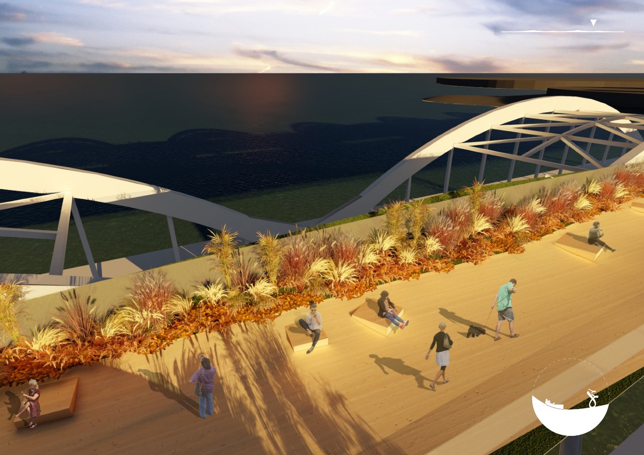 보행교가 기존 아치교 사이에 조성되는 만큼, 아치가 보이는 구간은 식재 등을 통해 가리고, 아치 아랫부분의 시야가 열리는 구간은 테라스 등을 통해 경계 없이 한강의 경관을 감상할 수 있도록 조성할 예정이다.