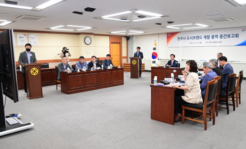 경남 진주시는 22일 시청 5층 상황실에서 조규일 진주시장을 비롯해 간부 공무원이 참석한 가운데 도시 브랜드 개발용역 중간 보고회를 가졌다.