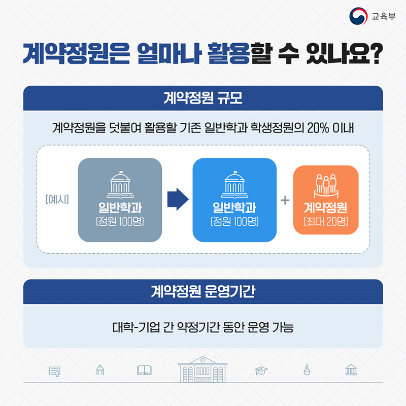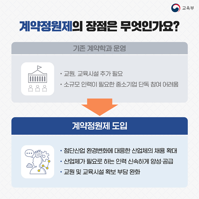 첨단분야 산업체의 채용예정 인재를 양성하는 경우 별도의 계약학과 설치 없이도 기존 학과에 계약정원을 추가해 운영할 수 있다.