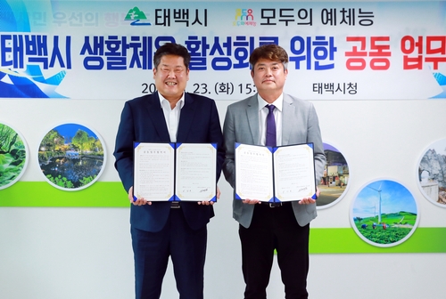 태백시와 모두의 예체능은 지난 23일 태백시청 시장실에서 태백시 생활체육 활성화를 위한 공동 업무 협약을 체결했다.