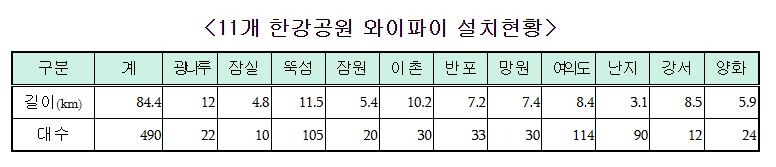 특히 많은 시민이 이용하는 11개 한강공원(여의도, 뚝섬 등)에 10G 속도의 백홀을 지원하는 와이파이 490대를 집중적으로 설치해 동시에 많은 인원이 사용하더라도 쾌적한 이용이 가능해졌다.