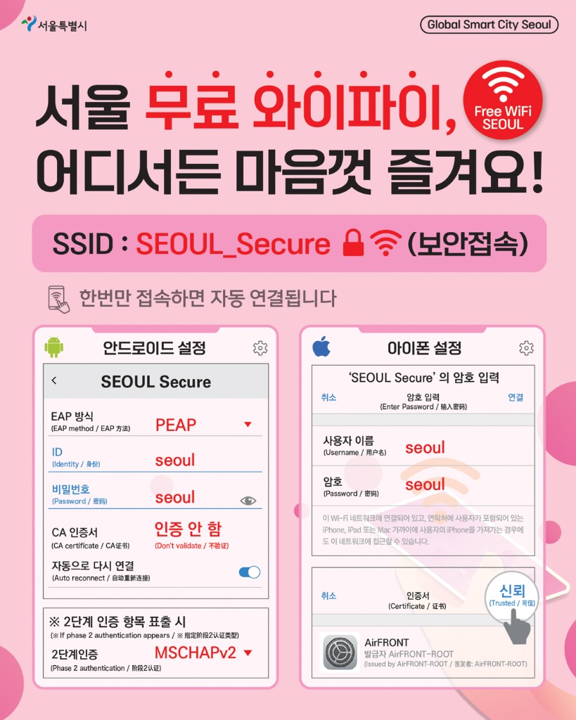 이를 통해 시민이 와이파이를 필요로 하는 장소에 고품질의 편리한 서울 무료 와이파이를 이용할 수 있는 환경을 조성하고,