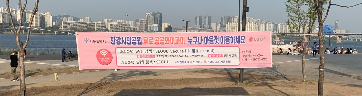# 최근 한강공원에서 소풍을 즐기기 위한 시민들의 발걸음이 끊이지 않고 있다. 친구들과 여의도한강공원을 방문한 20대 김 씨는 서울 무료 와이파이를 이용하여 유튜브 영상시청, 노래 감상, 배달 음식 주문 등 다양하게 활용하고 있다. 김 씨는 “최근 고정비 지출을 줄이기 위해 핸드폰 요금제를 알뜰폰 요금제로 변경하면서 부족한 데이터를 와이파이에 의존하고 있다. 한강공원에 무료 와이파이 현수막을 보고 처음 공공와이파이를 사용해봤는데 속도도 빠르고 안정적으로 이용할 수 있어서 너무 좋다”고 말했다.
