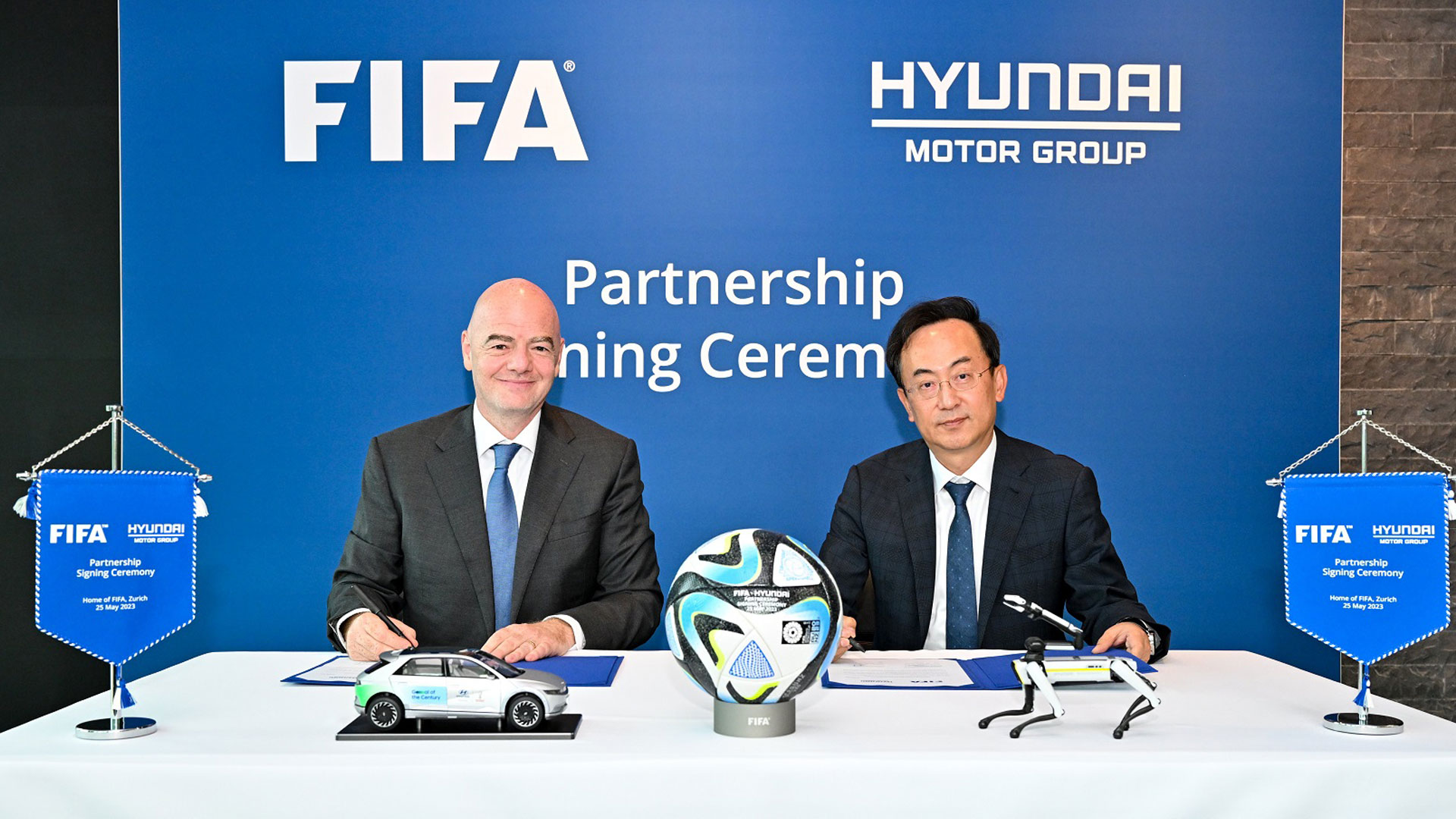 현대자동차그룹은 지난 25일(현지시간) 스위스 취리히 FIFA 본부에서 현대자동차그룹 기획조정실장 김걸 사장, 지안니 인판티노(Gianni Infantino) FIFA 회장 등이 참석한 가운데 2030년 FIFA 월드컵까지 파트너십을 연장하는 조인식을 가졌다.