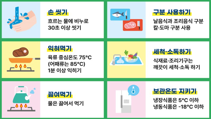 아울러 노로바이러스에 의한 식중독도 여전히 유행하고 있는 추세이므로 비누 등 세정제로 손씻기, 익혀먹기 등 식중독 예방수칙을 철저히 준수하는 것이 중요하다.