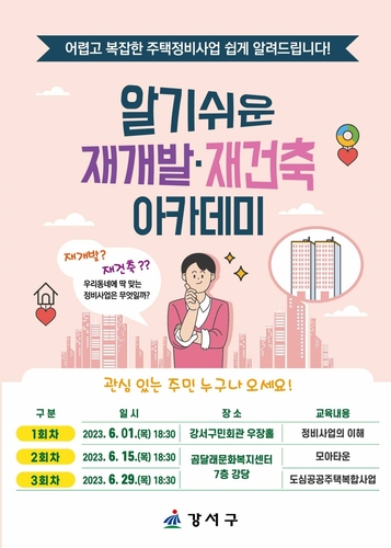 서울 강서구가 주민들의 가장 큰 관심사 중 하나인 재개발, 재건축에 대한 궁금증을 해결해 주기 위해 '알기 쉬운 재개발·재건축 아카데미'를 개최한다.