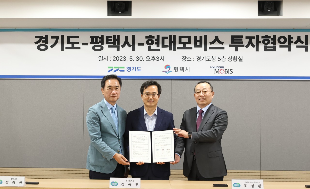 김동연 경기도지사는 30일 경기도청에서 조성환 현대모비스 대표이사, 정장선 평택시장과 이 같은 내용의 투자협약을 체결했다.