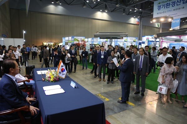 올해로 4회째를 맞는 ‘경기환경산업전’은 대기ㆍ물ㆍ에너지ㆍ자원순환 등 환경 전 분야에 걸쳐 300여 개의 우수한 환경 장비와 제품, 기술 등을 소개하고 미래 환경산업의 신기술을 선보이는 자리로 환경부, 국토교통부, 동반성장위원회 등 8개 기관이 후원한다.