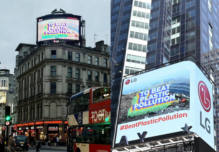 한편 LG전자는 5일 세계 환경의 날을 맞아 세계 곳곳에서 다양한 환경 보호 캠페인을 전개한다. 이달 말까지 뉴욕 타임스스퀘어와 런던 피카딜리광장 대형 전광판을 통해 유엔환경계획(UNEP)이 제작한 플라스틱 절감 캠페인 영상을 상영한다. LG전자가 보유한 전광판을 통해 국제기구나 NGO가 만든 공익 영상을 대신 상영해주는 ‘LG 희망스크린’활동의 일환이다.