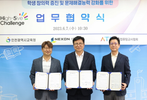 인천광역시교육청은 학생 창의력 증진과 문제해결 능력 강화를 위해 재단법인 넥슨재단, 사단법인 초등컴퓨팅교사협회와 업무협약을 7일 체결했다.