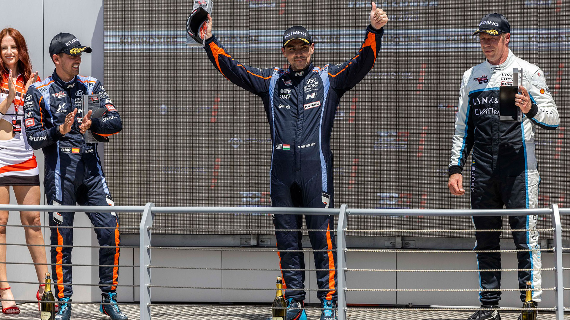 현대자동차가 글로벌 최정상급 투어링카 대회 '2023 TCR 월드투어' 이탈리아 대회에서 우승컵을 들어올리며 올해 두 번째 포디움에 올라섰다.