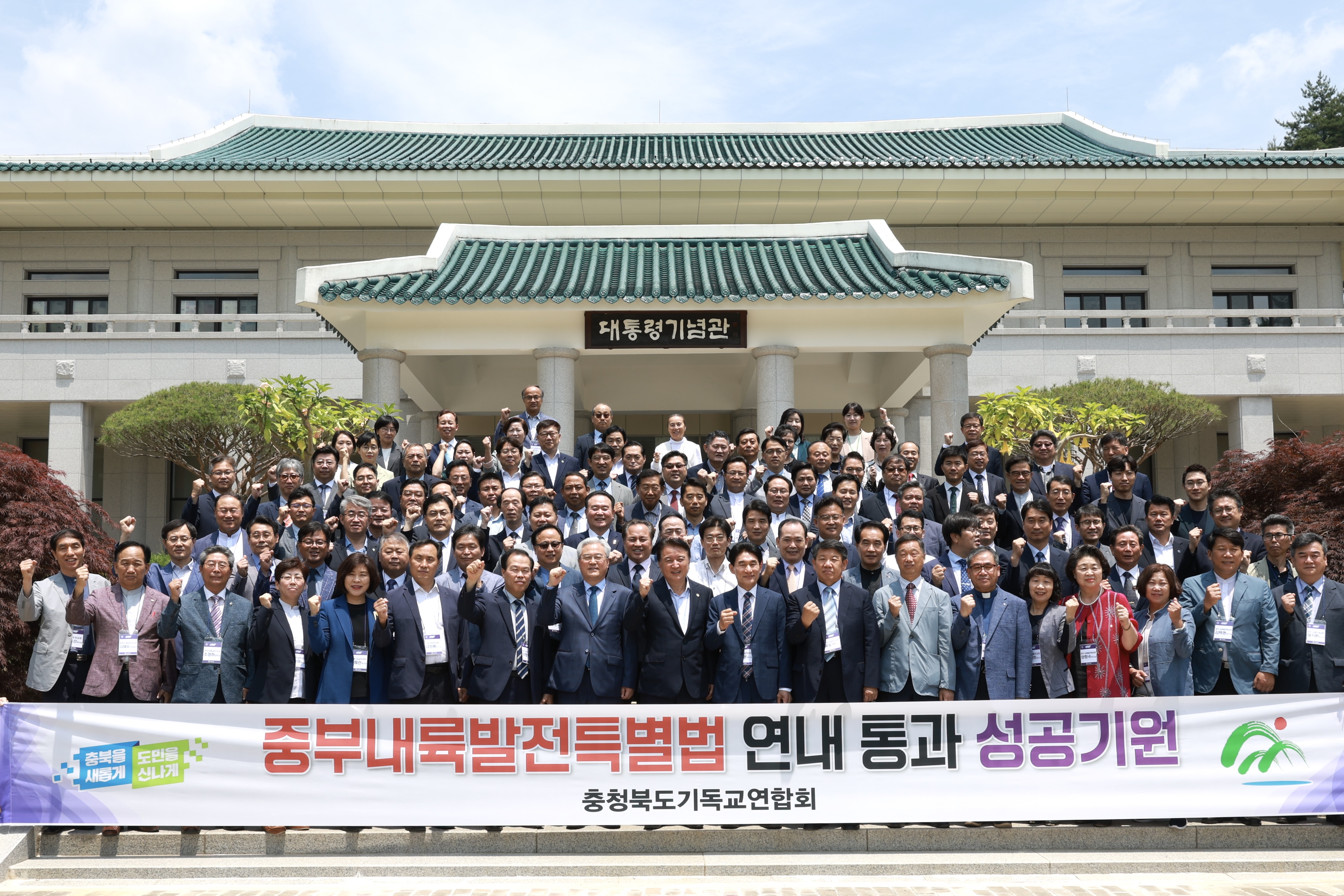 이날 충북기독교연합회(회장 박종운 목사)는 중부내륙특별법 연내 통과와 아이 낳고 기르기 좋은 충북을 위하여 한마음으로 기도했다. 아울러, 중부내륙특별법 연내 제정 촉구 대국민 홍보 및 공감대 형성을 위한 100만인 서명운동에 적극 동참했다.