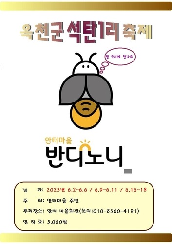 충북 옥천군 동이면 안터마을에서는 오는 18일까지 반딧불이 축제를 한다.