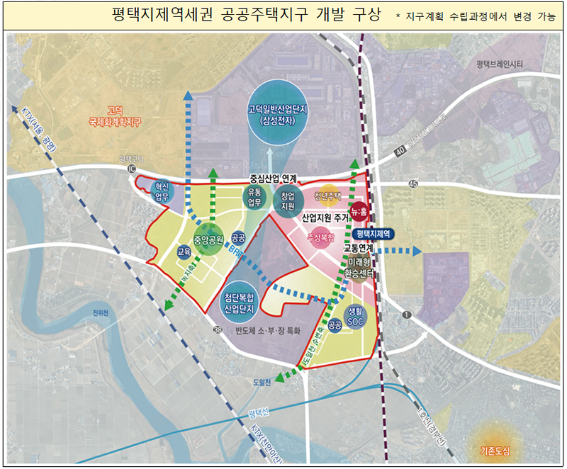 평택지제역세권을 중심으로 주거와 일자리, 교육·문화·의료 등 도시 기능들을 복합적으로 압축·고밀 개발해 생활 인프라 접근성을 높이고 뉴:홈 공급 등으로 주거 여건을 개선한다는 방침이다.