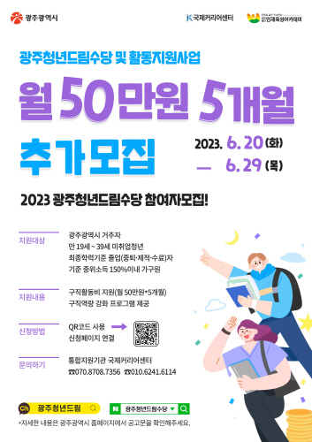 광주광역시는 '2023 광주청년드림수당 및 활동지원사업' 2기 참여자를 추가 모집한다.