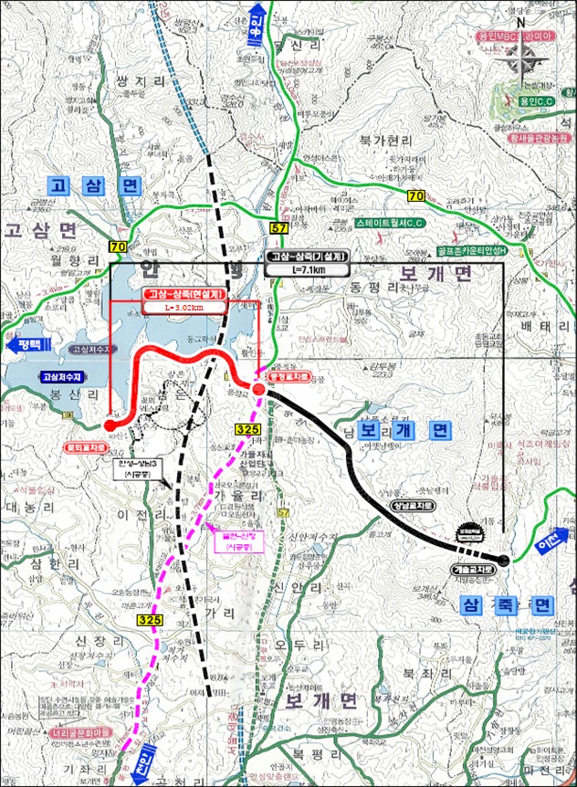고삼~삼죽(1) 도로확포장공사는 지방도 306호선 안성시 고삼면 봉산리~보개면 남풍리 3.02km 구간이다. 이 구간 기존 도로는 1차선에, 도로 폭이 좁고 굴곡이 심해 차량 교행이 되지 않아 주민들이 많은 불편을 겪고 있다.