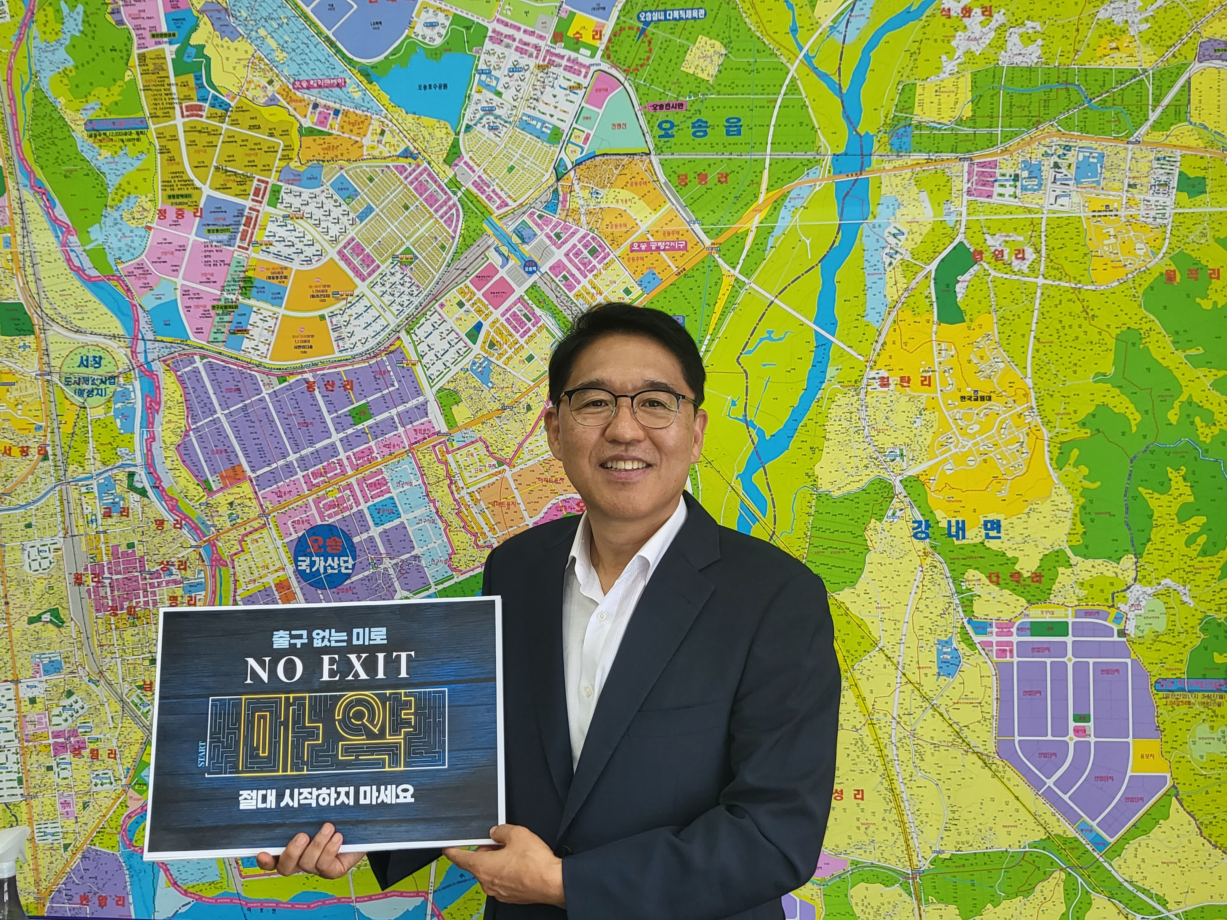맹경재 충북경제자유구역청장이 16일 마약 범죄를 예방하는 ‘노 엑시트(NO EXIT)’ 릴레이 캠페인에 동참했다.