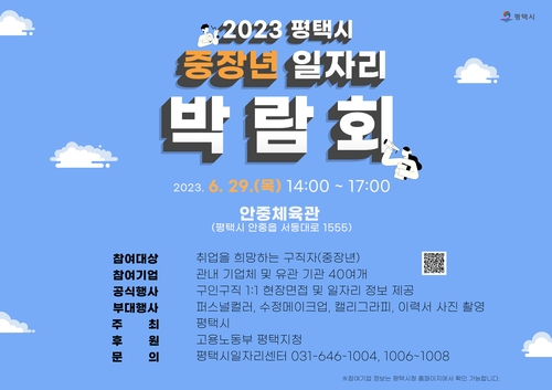 평택시는 오는 29일 오후 2시부터 5시까지 안중체육관에서 관내 우수기업의 구인난 해소 및 중장년층 구직자의 고용 촉진을 위한 '2023 평택시 중장년 일자리박람회'를 개최한다고 밝혔다.