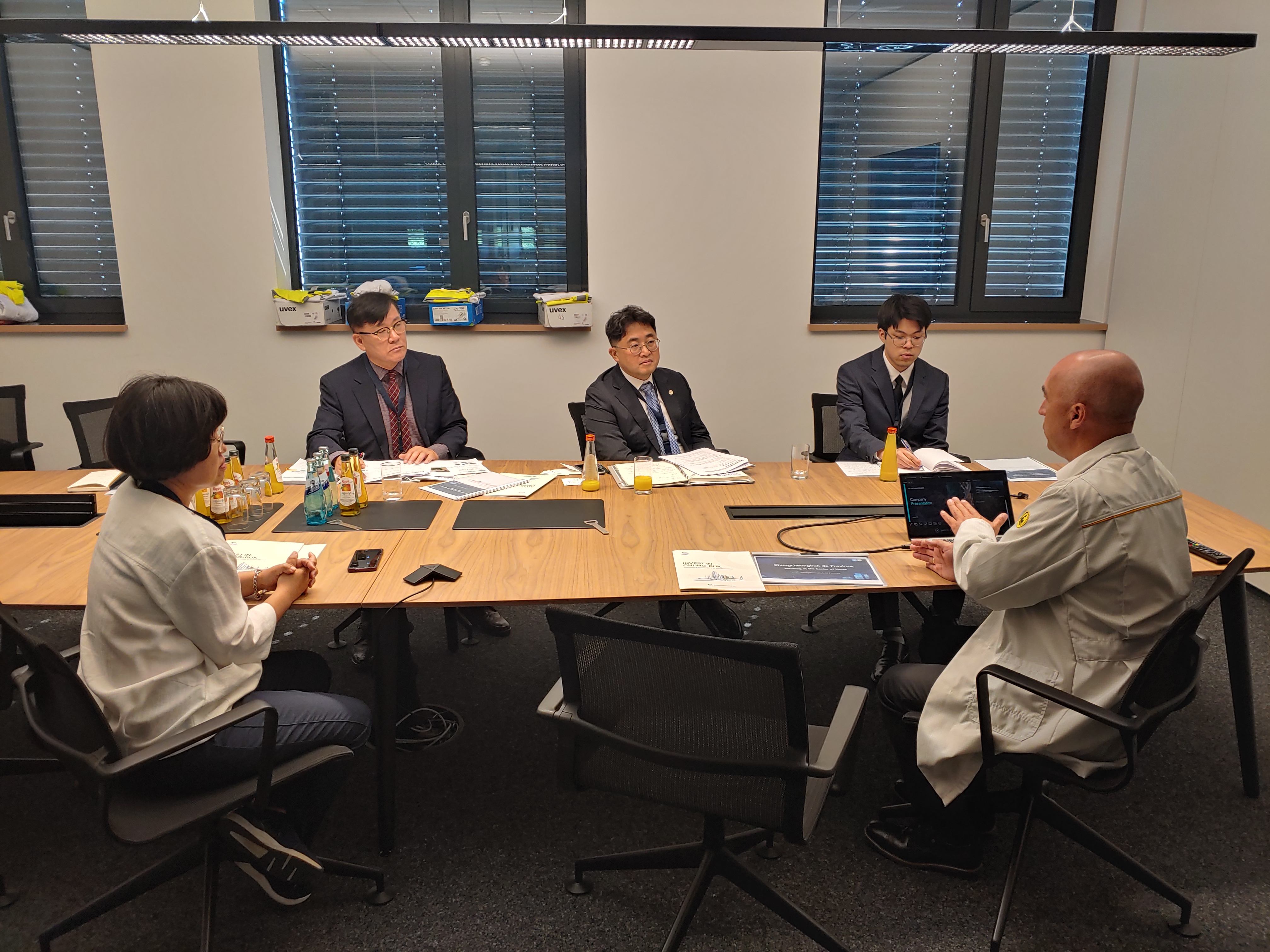 먼저, 지난 12일에는 프랑크푸르트 무역관과 협력방안을 논의하고 상호 적극 협조하기로 하였으며, 13일에는 2차전지 기업인 Akasol AG와 반도체 관련 기업인 Heraeus사를 방문하여 충북의 우수한 투자환경을 설명하고 충북에 투자를 당부하였다. 특히, Heraeus사는 2025년부터 3년간 약 600억원을 투자하기로 하였다. 또한, 주프랑크푸르트 고경석 총영사와 간담회를 갖고 충북도와 투자유치 및 수출지원에 상호 협력하기로 하였다.