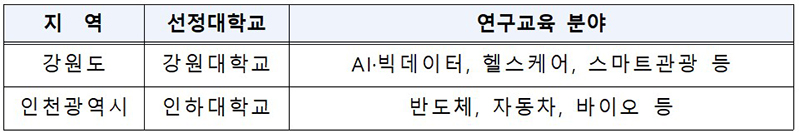 선정된 대학들은 최장 8년(2+4+2년) 동안 연 20억 원 수준을 지원 받아 대학당 연 20명을 양성하는데, 올해에는 강원대와 인하대를 선정했다.