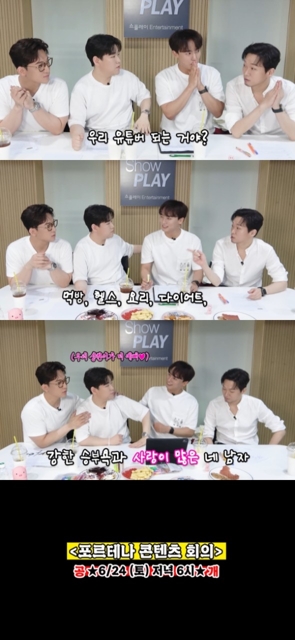 포르테나 멤버들은 “먹방, 헬스, 요리, 다이어트 방송을 할 것”이라고 말하는 등 콘텐츠에 대한 다채로운 아이디어를 제시하며 열띤 회의를 진행했다.