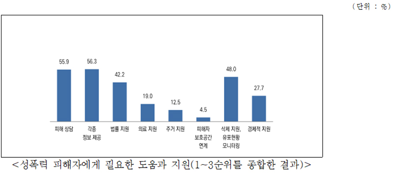 성폭력 피해자에게 필요한 도움과 지원(1~3순위를 종합한 결과). (자료=여성가족부)