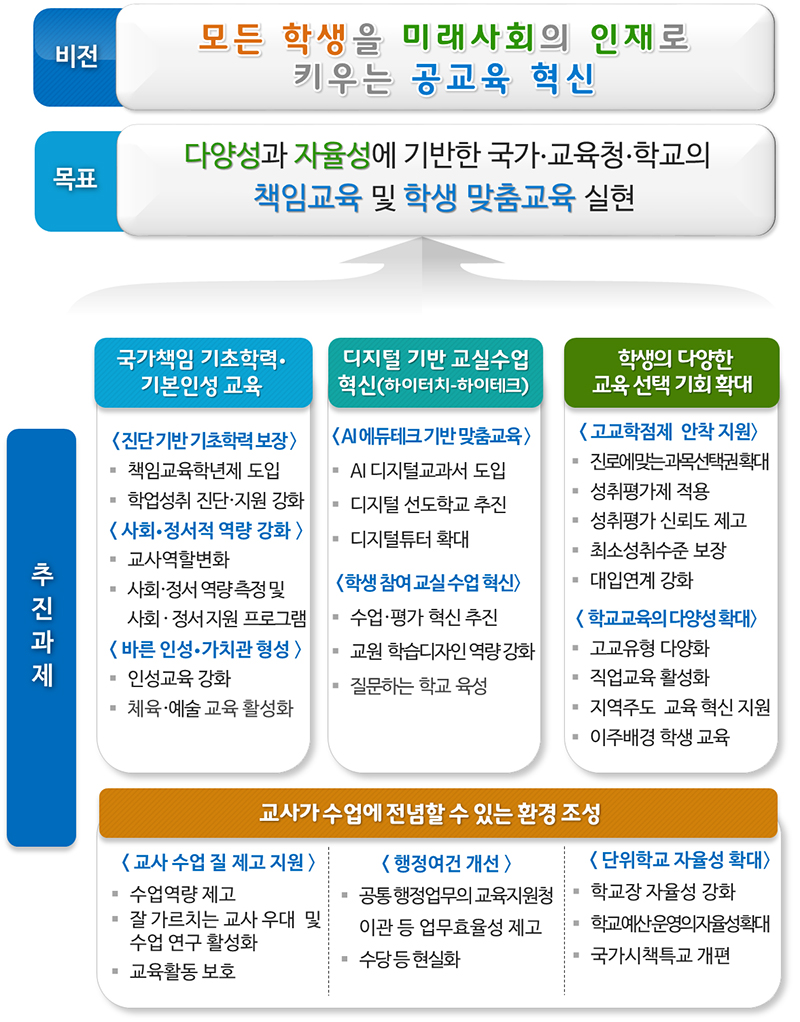 교육부는 특히 의무교육 단계인 초·중학교에서 국가가 학생들의 기초학력을 책임지고 보장하며 바른 인성과 가치관의 형성을 지원한다.