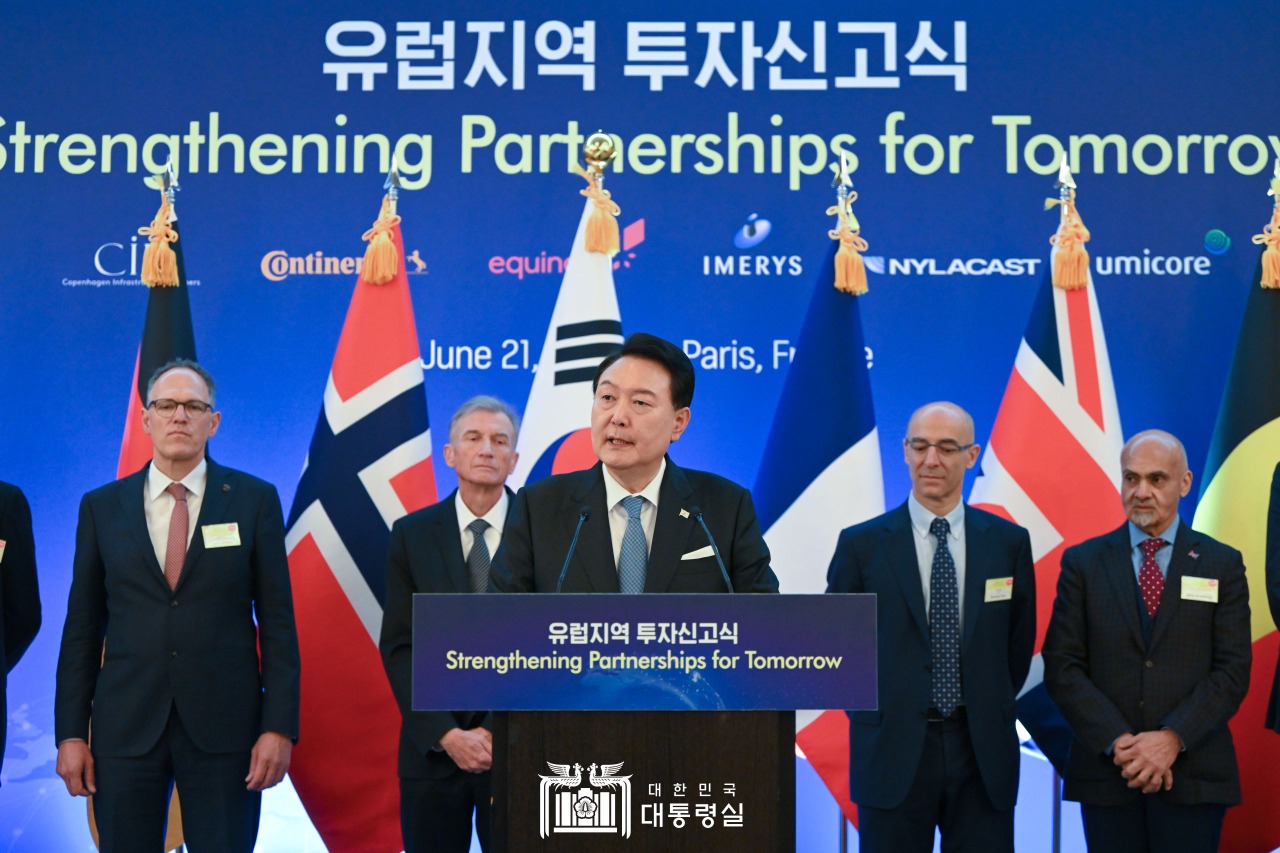 윤 대통령이 21일 오전(현지시간) 프랑스 파리 시내 호텔에서 열린 ‘유럽지역 투자신고식’에 참석한 가운데, 이 같은 투자 약정식이 있었다고 대통령실 이도운 대변인이 서면 브리핑했다.