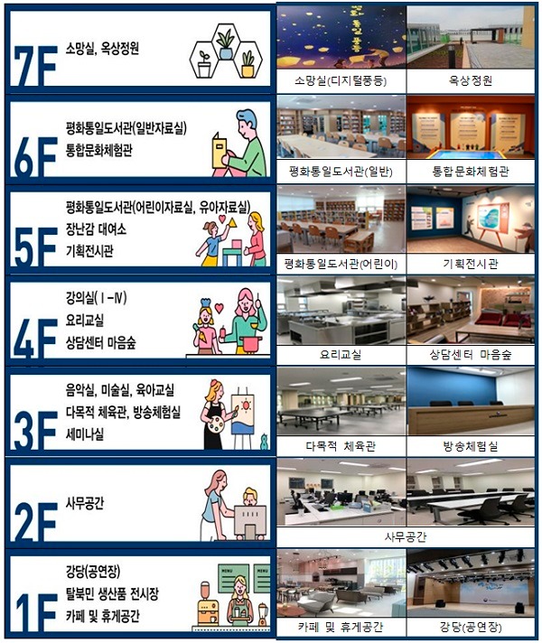 아울러 남녀노소 누구나 이용이 가능한 기획전시관, 통합문화체험관, 평화통일도서관(어린이도서관 포함) 등의 체험 공간이 ‘평화와 통합을 체험하는 산실’이 될 수 있도록 앞장설 예정이다.