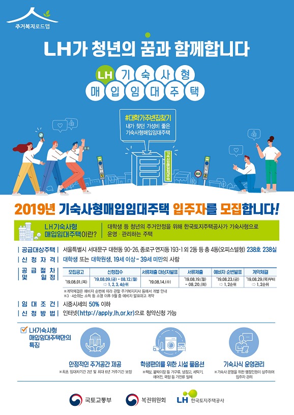 이번에 공급하는 기숙사형 청년주택은 한국주택토지공사(LH)에서 운영·관리를 맡는다. 지하철 등 대중교통 이용이 편리하고 대학이 밀집된 지역에 마련됐다.