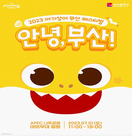 부산시와 더핑크퐁컴퍼니는 오는 7월 1일 오전 11시 수영강 에이펙(APEC) 나루공원 야외무대에서 '핑크퐁 아기상어 고향 페스티벌 '안녕, 부산!''을 개최한다고 밝혔다.
