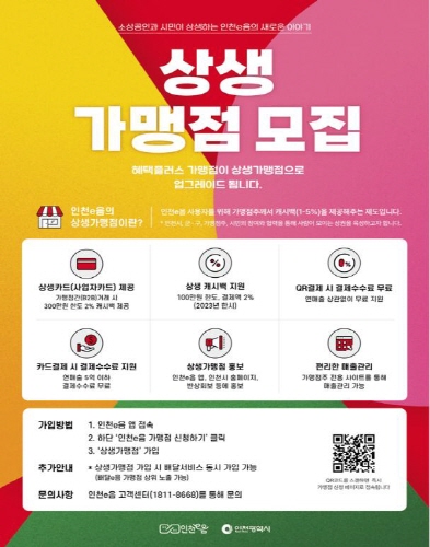 인천광역시는 인천사랑상품권의 장기적 자생방안 마련을 위해 '상생가맹점'을 상시 모집한다고 밝혔다.