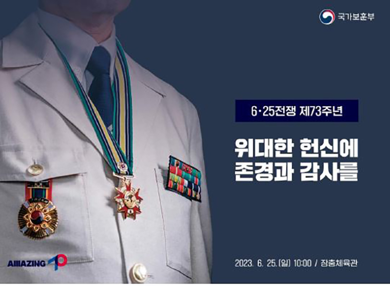 국가보훈부는 오는 25일 오전 10시 서울 장충체육관에서 ‘6·25전쟁 제73주년 행사’를 거행한다고 23일 밝혔다.