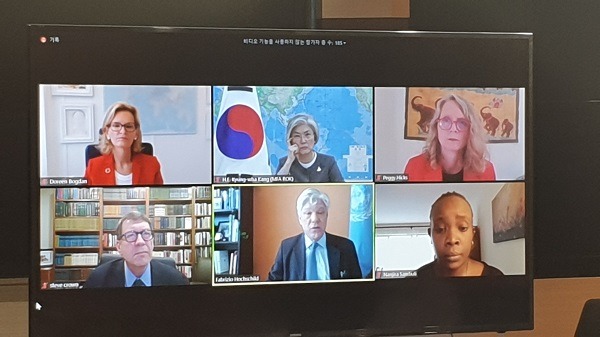 강경화 장관은 5.13.(수) 오전 09시(뉴욕시간) 유엔(UN)·국제전기통신 연합[ITU] 공동 주최로 개최된 코로나19 대웅과 디지털 협력에 관한 화상회의에 참석해 「디지털 기술을 통한 감염병 대응과 인권 보호」에 대해 논의했습니다.