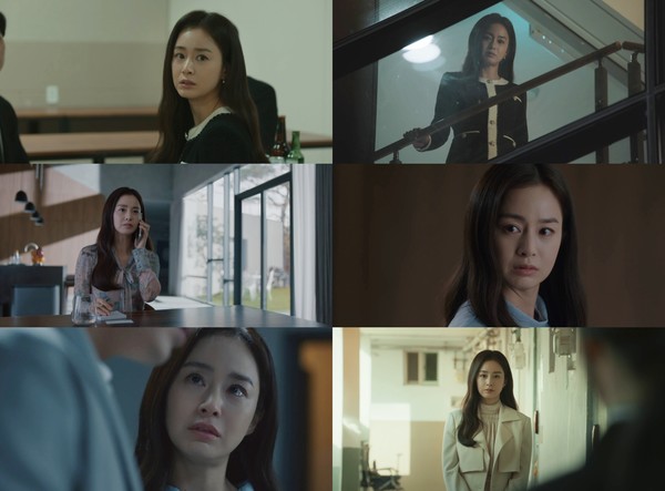 김태희는 남편 박재호(김성오 분)의 의심스러운 행적에 점점 불안감이 스며드는 문주란의 심리 변화를 섬세하게 표현해냈다. 김윤범의 장례식장에서 주란은 남편 재호와 상은 사이에 흐르는 의미심장한 분위기를 감지한 것.