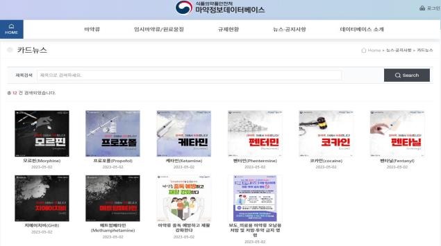 마약류 등 정보, 법령, 오남용 예방 카드뉴스, 캠페인 영상 등 제공