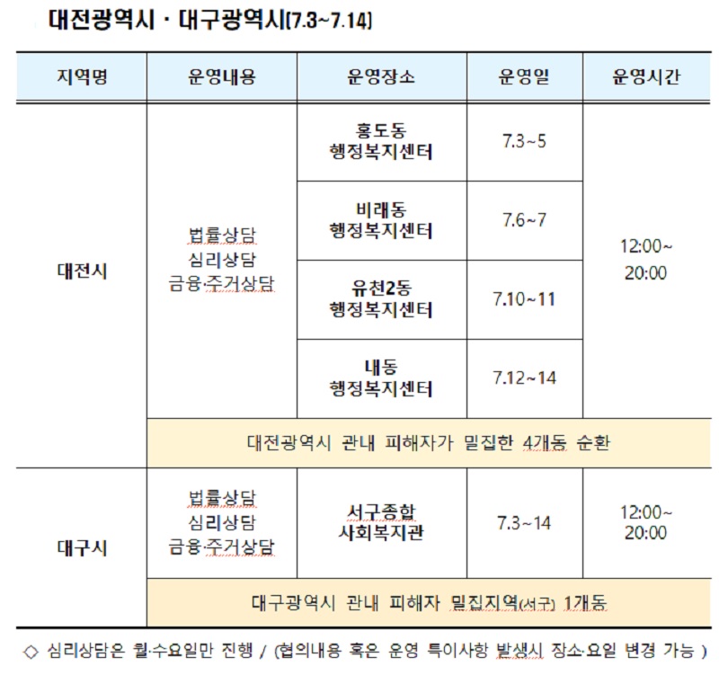 대전과 대구에서는 다음달 3~14일, 낮 12시부터 오후 8시까지 상담 서비스를 지원한다.
